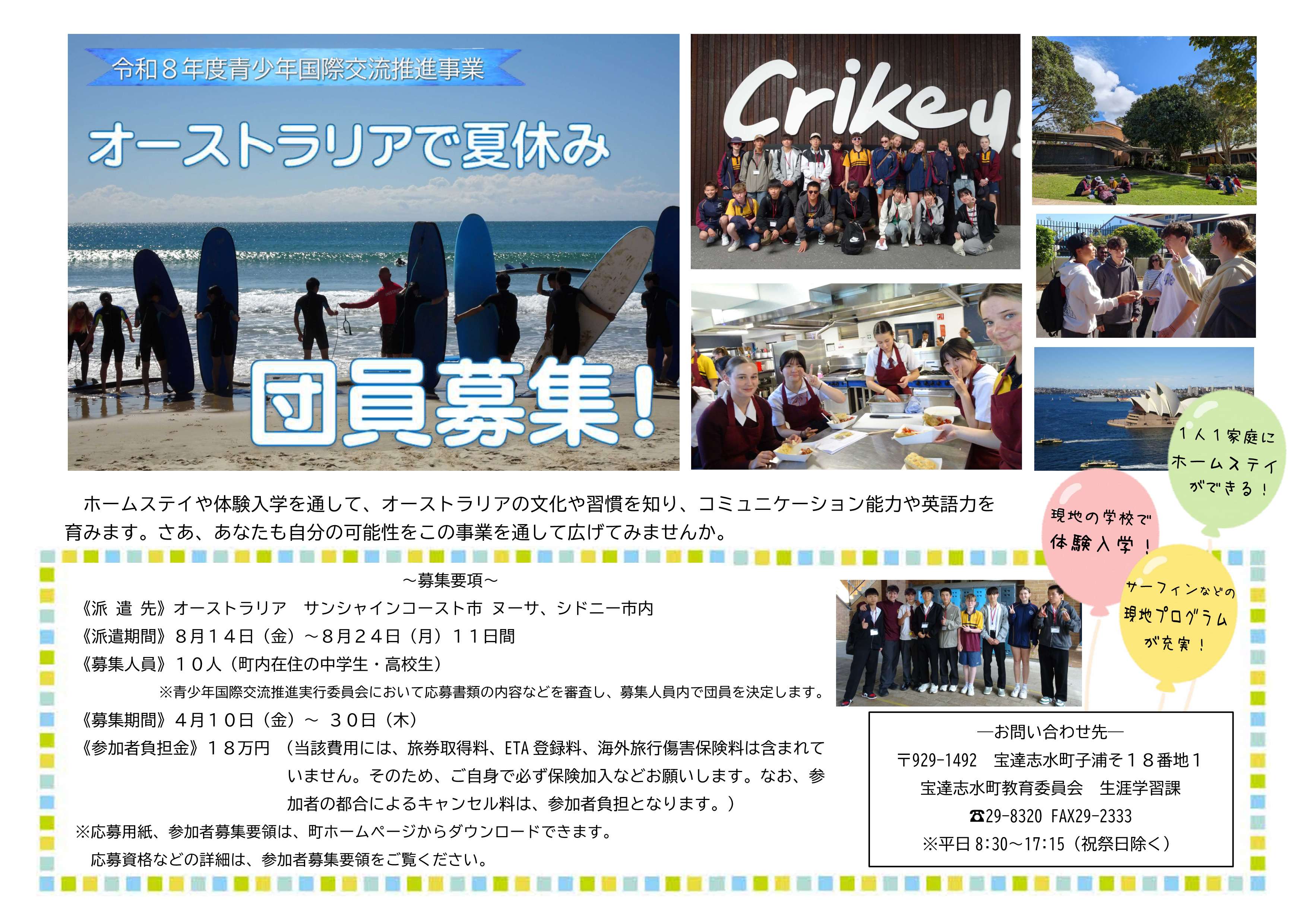 令和8年度宝達志水町青少年国際交流推進事業 団員募集!