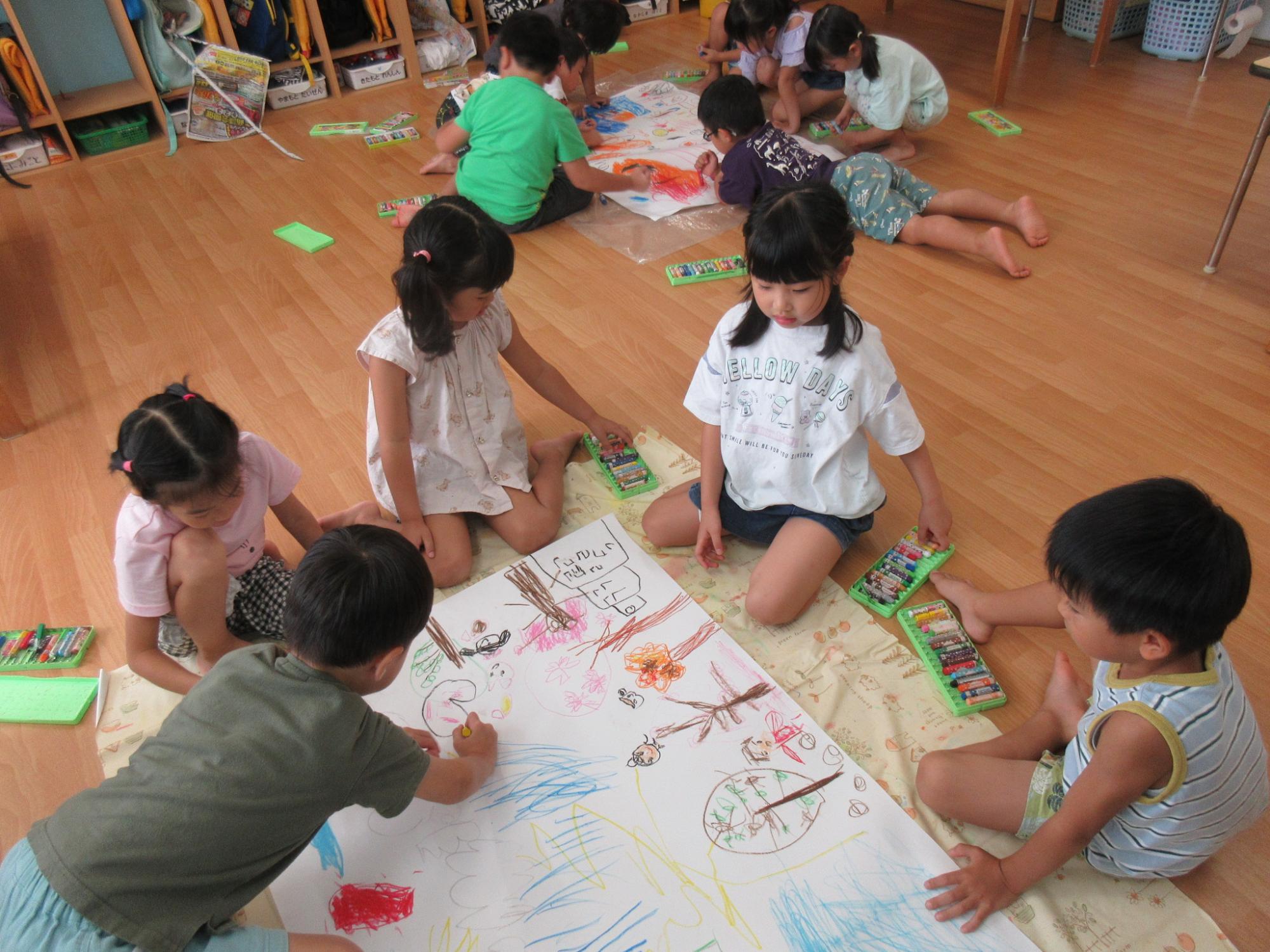 大きな紙にみんなでお絵かき♪楽しいな~!!
