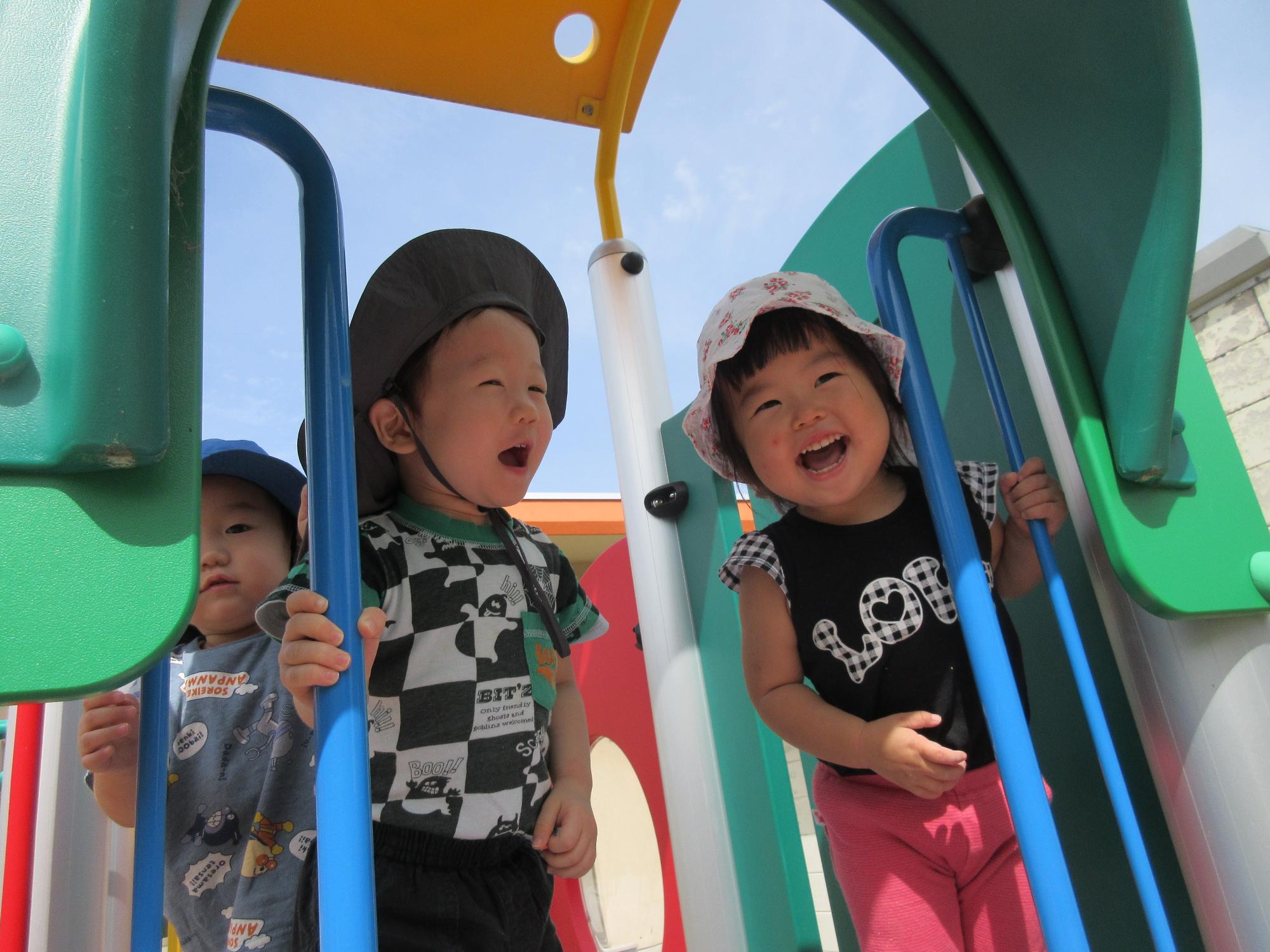 すべり台の上から『やっほー!!』